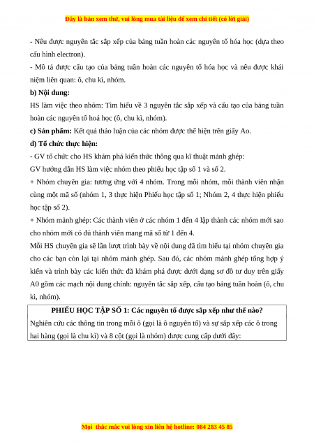 niệm liên quan: ô, chu kì, nhóm. b) Nội dung: