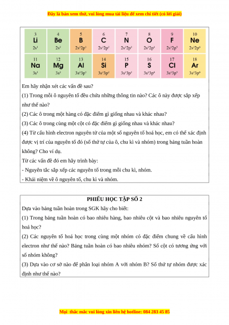 PHIẾU HỌC TẬP SỐ 1: Các nguyên tố được sắp xếp như thế nào?