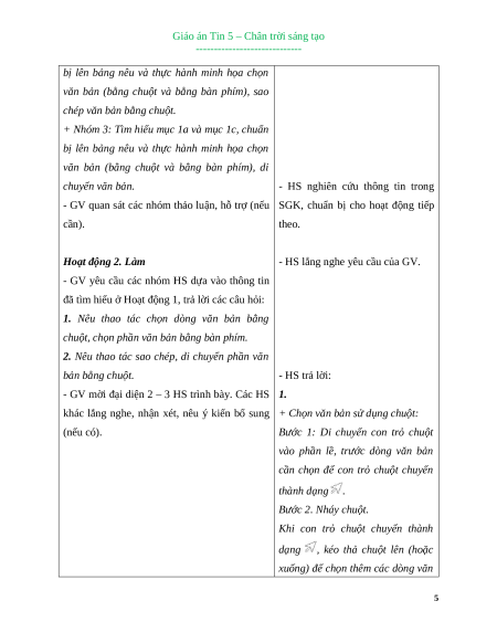 Giáo án Tin 5 – Chân trời sáng tạo -----------------------------