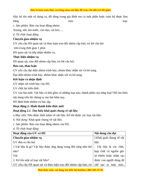 Hoạt động 2.1. Tìm hiểu khái quát chung về vật liệu