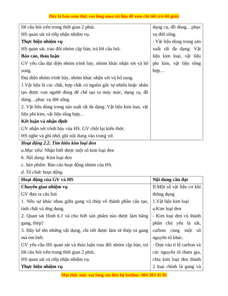 Giáo án Bài 6 Công nghệ 8 Cánh diều: Vật liệu cơ khí