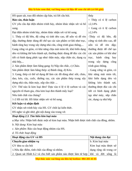 HS quan sát, trao đổi nhóm cặp bàn, trả lời câu hỏi. thép