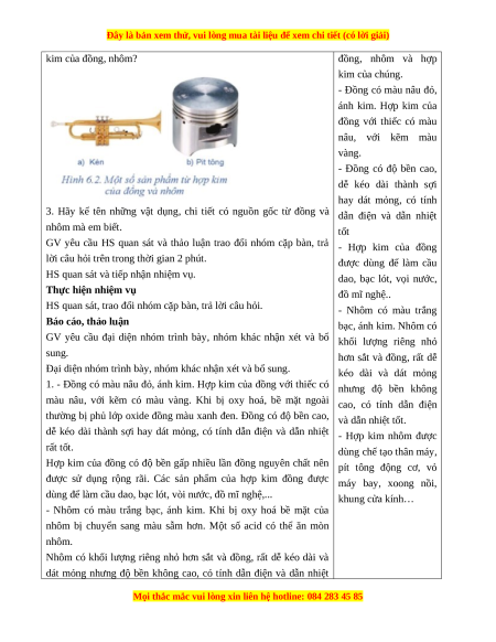a.Mục tiêu: Nhận biết được một số kim loại màu. Nhận biết được tính chất của đồng, nhôm.