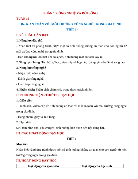 PHẦN 1. CÔNG NGHỆ VÀ ĐỜI SỐNG TUẦN 16
