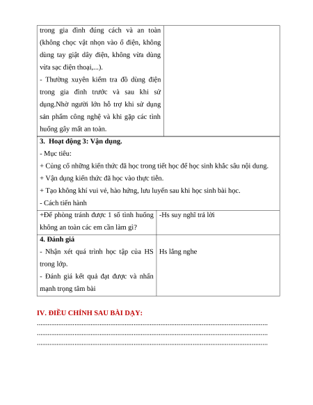 Giáo án Bài 6 Công nghệ lớp 3 Chân trời sáng tạo: An toàn với môi trường công nghệ trong gia đình
