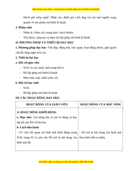 quanh về sản phẩm mô hình kĩ thuật. 3. Phẩm chất