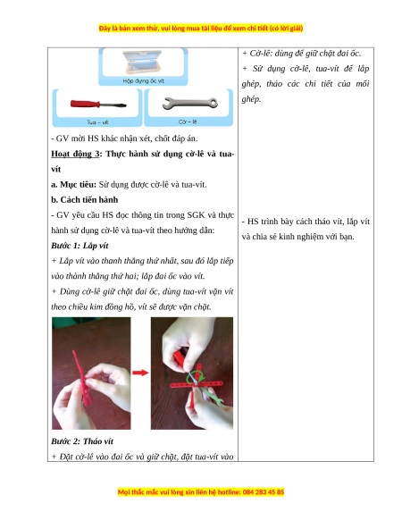 - Sử dụng được dụng cụ để lắp và tháo vít; lắp ghép được một số mô hình đơn giản. 2. Năng lực