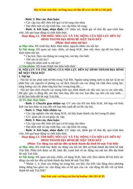 tác động của nội lực và các dạng địa hình bề mặt Trái Đất do tác động của nội lực tạo thành. 3. Phẩm chất:
