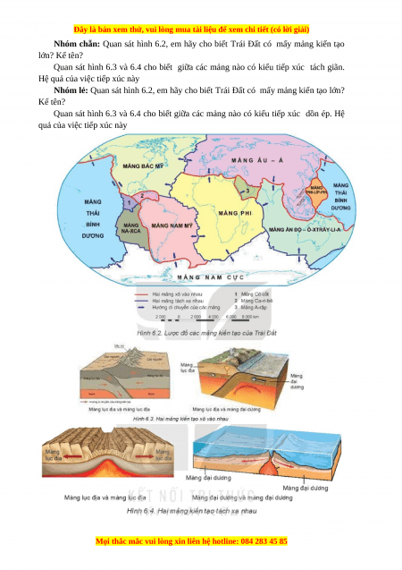 Nhóm chẵn: Quan sát hình 6.2, em hãy cho biết Trái Đất có mấy mảng kiến tạo lớn? Kể tên?