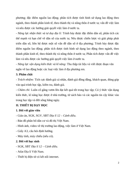 Giáo án Bài 6 Địa lí 12 Cánh diều (2024): Dân số, lao động và việc làm