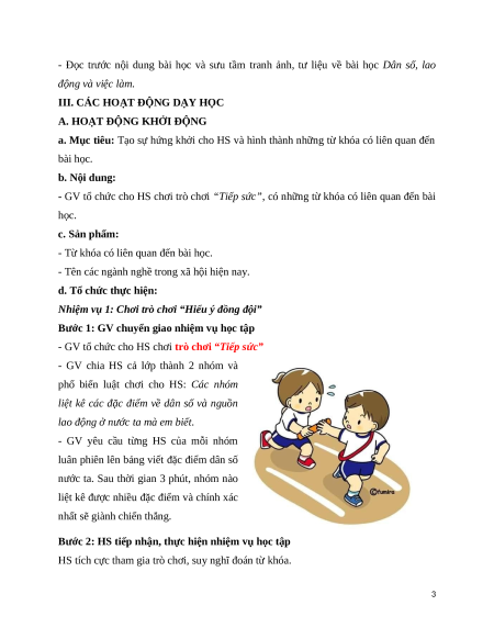 III. CÁC HOẠT ĐỘNG DẠY HỌC