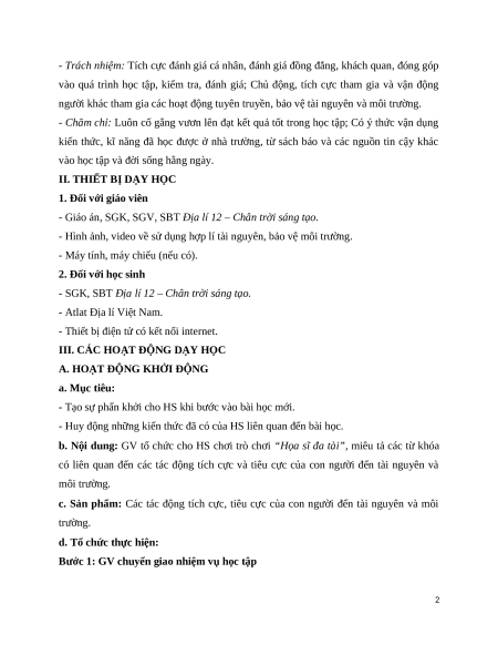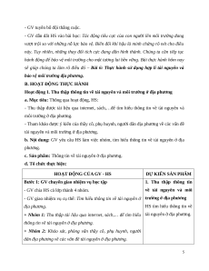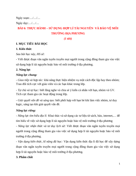 hợp lí tài nguyên hoặc bảo vệ môi trường ở địa phương. 3. Phẩm chất 1