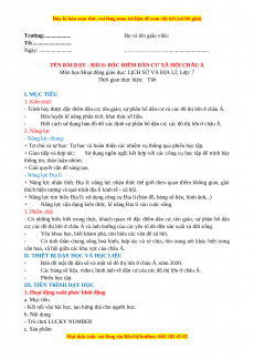TÊN BÀI DẠY - BÀI 6: ĐẶC ĐIỂM DÂN CƯ XÃ HỘI CHÂU Á
