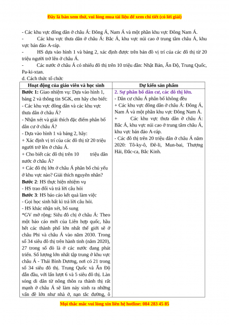 - Trình bày được sự phân bố dân cư và các đô thị lớn ở châu Á.