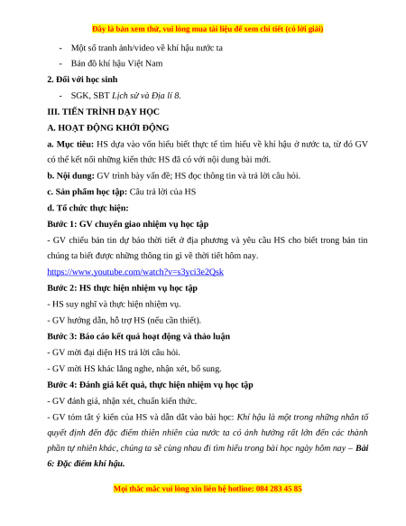 Giáo án Bài 6 Địa lí 8 Chân trời sáng tạo (2024): Đặc điểm khí hậu