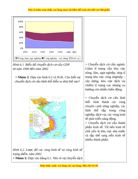 Đây là bản xem th , vu ử i lòng mua tài li u ệ đ xe ể m chi ti t (c ế ó l i ờ gi i ả ) Hình 6.1. Bi u đ ể ồ chuy n d ể ịch c c ơ ấu GDP + Chuy n ể d ch ị cơ c u ấ ngành: t năm ừ 1990 đ n ế năm 2002 Gi m ả tỉ tr ng ọ c a ủ khu v c ự nông, lâm, ngư nghi p, ệ tăng tỉ + Nhóm 2: D a