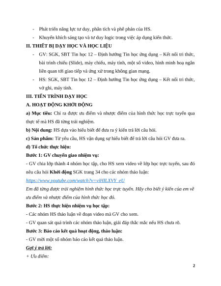 II. THIẾT BỊ DẠY HỌC VÀ HỌC LIỆU