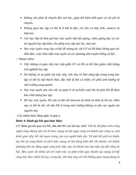 a) Mục tiêu: Chỉ ra được ưu điểm và nhược điểm của hình thức học trực tuyến qua
