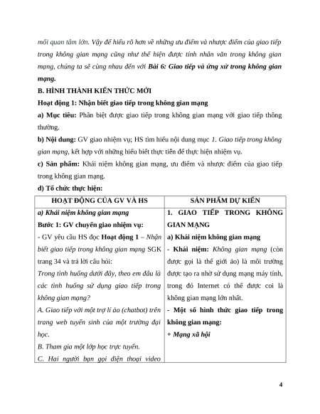Giáo án Bài 6: Giao tiếp và ứng xử trong không gian mạng Tin học 12 Kết nối tri thức