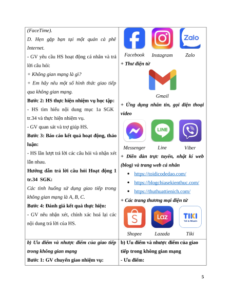 Hoạt động 1: Nhận biết giao tiếp trong không gian mạng