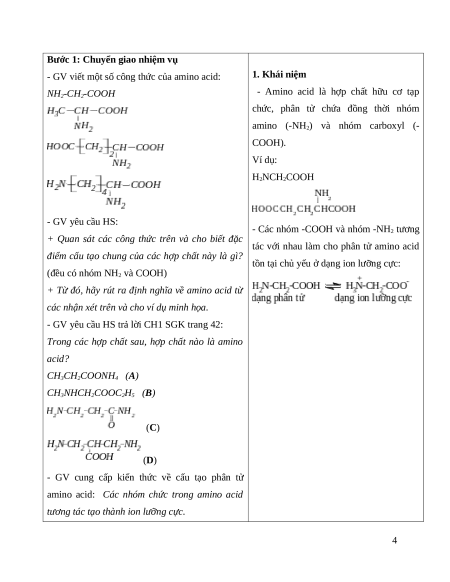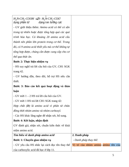 Giáo án Bài 6 Hóa học 12 Cánh Diều: Amino acid