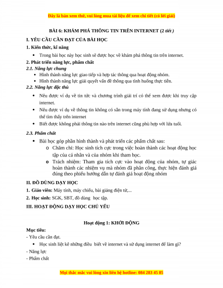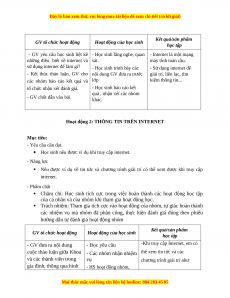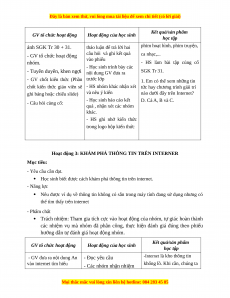 Hoạt động 3: KHÁM PHÁ THÔNG TIN TRÊN INTERNER Mục tiêu: - Yêu cầu cần đạt.