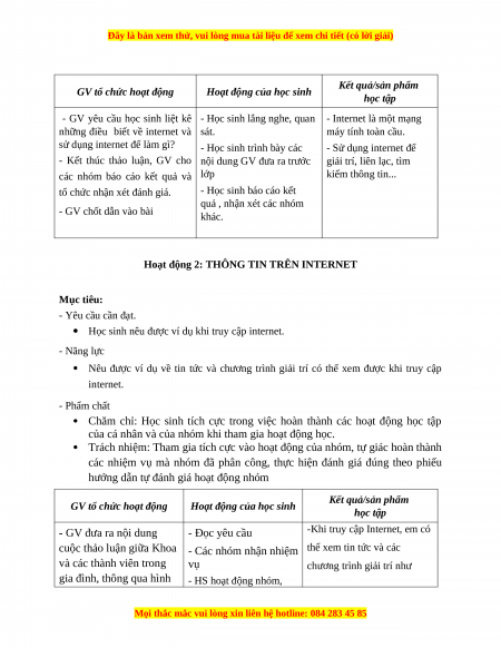 Hoạt động 2: THÔNG TIN TRÊN INTERNET