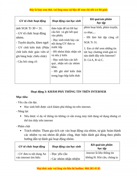 Hoạt động 3: KHÁM PHÁ THÔNG TIN TRÊN INTERNER