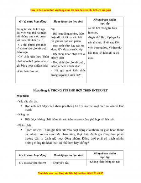 Hoạt động 4: THÔNG TIN PHÙ HỢP TRÊN INTERNET Mục tiêu: - Yêu cầu cần đạt.