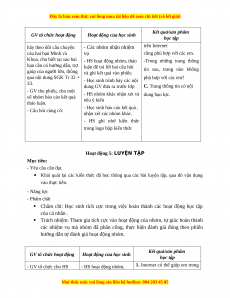 III. HOẠT ĐỘNG DẠY HỌC CHỦ YẾU