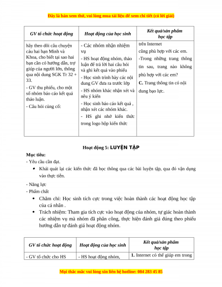 Hoạt động 4: THÔNG TIN PHÙ HỢP TRÊN INTERNET