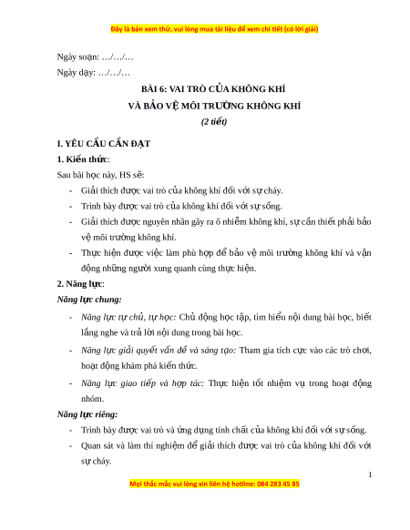 ạ : Tham gia tích c c ự vào các trò ch i ơ , ho t ạ đ n ộ g khám phá ki n ế th c ứ . - Năng l c ự giao ti p ế và h p ợ tác: Th c ự hi n ệ t t ố nhi m ệ vụ trong ho t ạ đ n ộ g nhóm. Năng l c ự riêng: - Trình bày đ c ượ vai trò và n ứ g d n ụ g tính ch t ấ c a ủ không khí đ i ố v i ớ s ự s n ố g.
