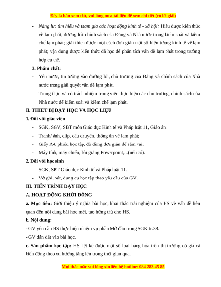 phát; vận dụng được kiến thức đã học để phân tích vấn đề lạm phát trong trường hợp cụ thể. 3. Phẩm chất: