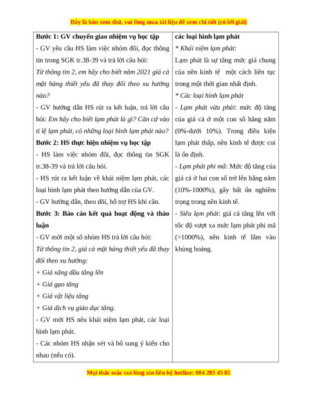 phát; vận dụng được kiến thức đã học để phân tích vấn đề lạm phát trong trường