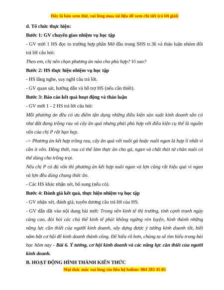 Bước 1: GV chuyển giao nhiệm vụ học tập kinh doanh, các nguồn giúp tạo ý