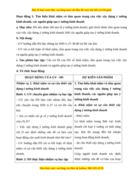 của việc xây dựng ý tưởng kinh doanh; biết các nguồn giúp tạo ý tưởng kinh doanh. b. Nội dung: