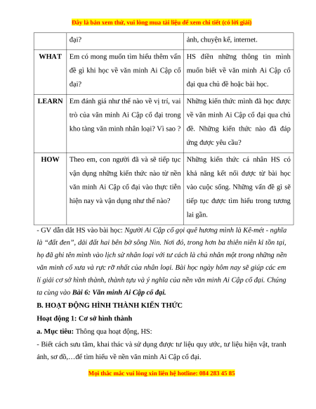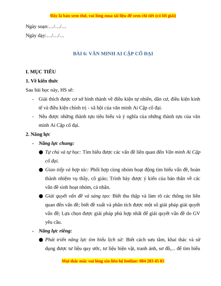 BÀI 6: VĂN MINH AI CẬP CỔ ĐẠI I. MỤC TIÊU 1. Về kiến thức Sau bài học này, HS sẽ: