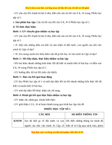 - GV yêu cầu HS chuẩn bị bài ở nhà, điền sẵn câu trả lời vào ô K, W trong Phiếu học tập số 1.
