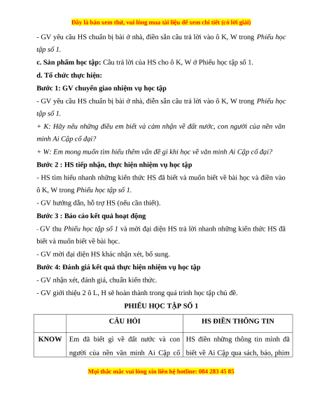 - GV yêu cầu HS chuẩn bị bài ở nhà, điễn sẵn câu trả lời vào ô K, W trong Phiếu học tập số 1.