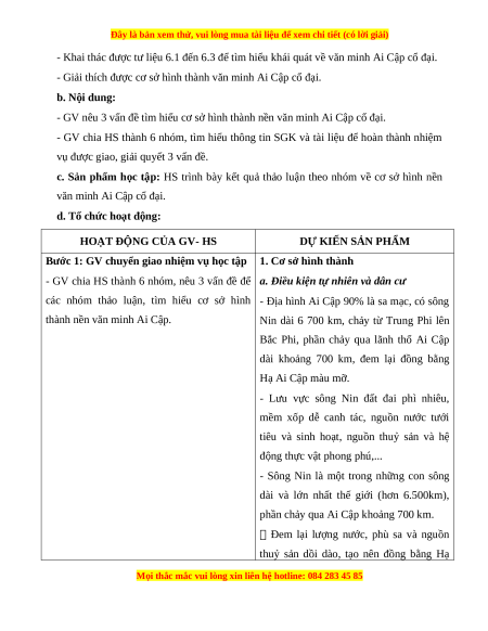 Giáo án Bài 6 Lịch sử 10 Chân trời sáng tạo (2024): Văn minh Ai Cập