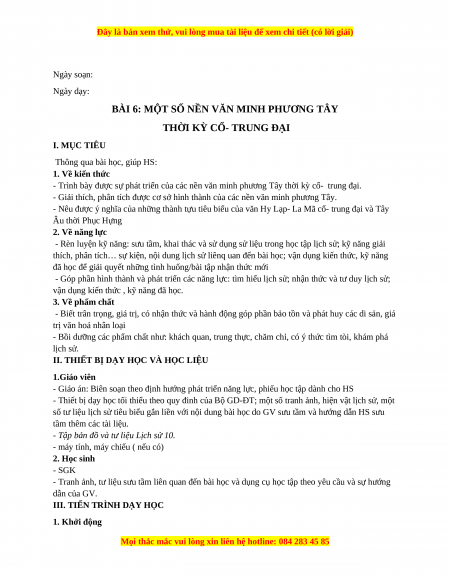 Giáo án Bài 6 Lịch sử 10 Kết nối tri thức (2024): Một số nền văn minh phương Tây thời kì cổ - trung đại