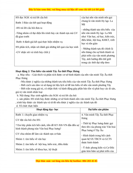 a. Mục tiêu: - Giải thích và phân tích được cơ sở hình thành của nền văn minh Tây Âu thời Phục Hưng