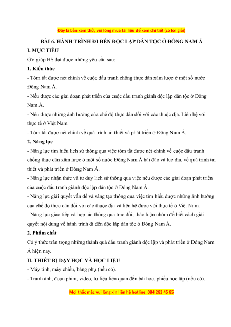 BÀI 6. HÀNH TRÌNH ĐI ĐẾN ĐỘC LẬP DÂN TỘC Ở ĐÔNG NAM Á I. MỤC TIÊU