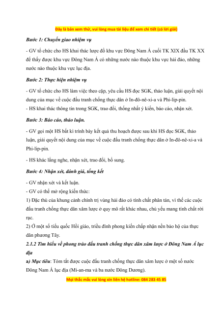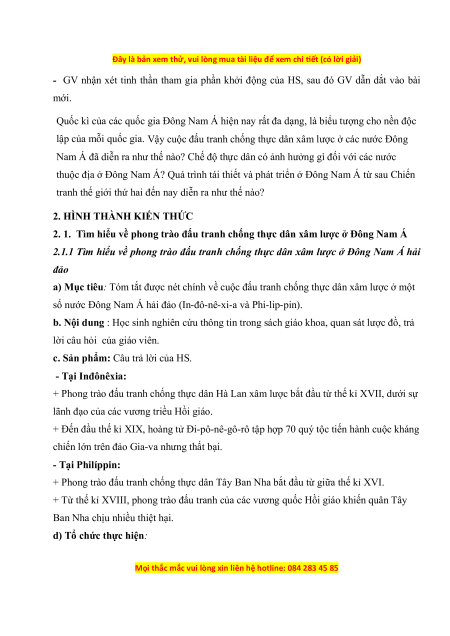 luận, giải quyết nội dung của mục về cuộc đấu tranh chống thực dân ở In-đô-nê-xi-a và Phi-lip-pin.