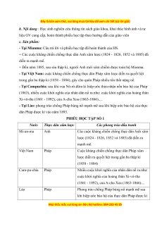 - Tóm tắt được nét chính về cuộc đấu tranh chống thực dân xâm lược ở một số nước Đông Nam Á.