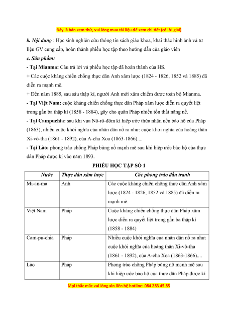 a) Mục tiêu: Tóm tắt được cuộc đấu tranh chống thực dân xâm lược ở một số nước