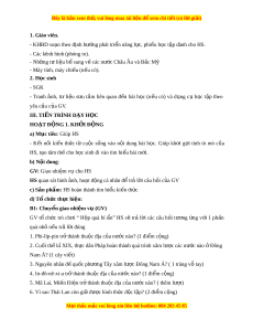 - Các kênh hình (phóng to). - Nh ng ữ t ư li u ệ b ổ sung v ề các nư c ớ Châu Âu và B c ắ Mỹ - Máy tính, máy chi u ế (n u ế có). 2. Học sinh - SGK - Tranh nh, ả tư li u ệ s u ư t m ầ liên quan đ n ế bài h c ọ (n u ế có) và d ng ụ c ụ h c ọ t p ậ theo yêu cầu c a ủ GV. III. TI N Ế TRÌNH D Y Ạ H C Ọ HOẠT Đ NG Ộ 1. KH I Ở Đ NG Ộ a) M c ụ tiêu: Giúp HS - K t ế n i ố ki n ế th c ứ từ cu c ộ s ng ố vào n i ộ dung bài h c ọ . Giúp kh i ơ g i ợ tính tò mò c a ủ HS, tạo tâm th ế cho h c ọ sinh đi vào tìm hi u ể bài m i. ớ b) Nội dung: GV: Giao nhi m ệ vụ cho HS HS quan sát hình nh, ả hoạt đ ng ộ cá nhân đ ể trả l i ờ câu h i ỏ c a ủ GV c) S n ả ph m