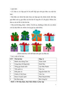 + GV đưa ra các hộp quà bí ẩn (mỗi hộp quà chứ giai điệu của một bài hát).