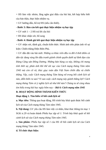 Giáo án Bài 6 Lịch sử 12 Cánh diều (2024): Cách mạng tháng Tám năm 1945