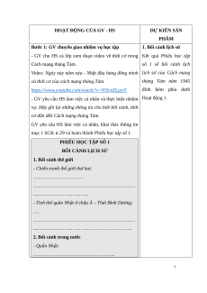 c. Sản phẩm: Phiếu học tập số 1 của HS về bối cảnh lịch sử của Cách mạng tháng Tám năm 1945.